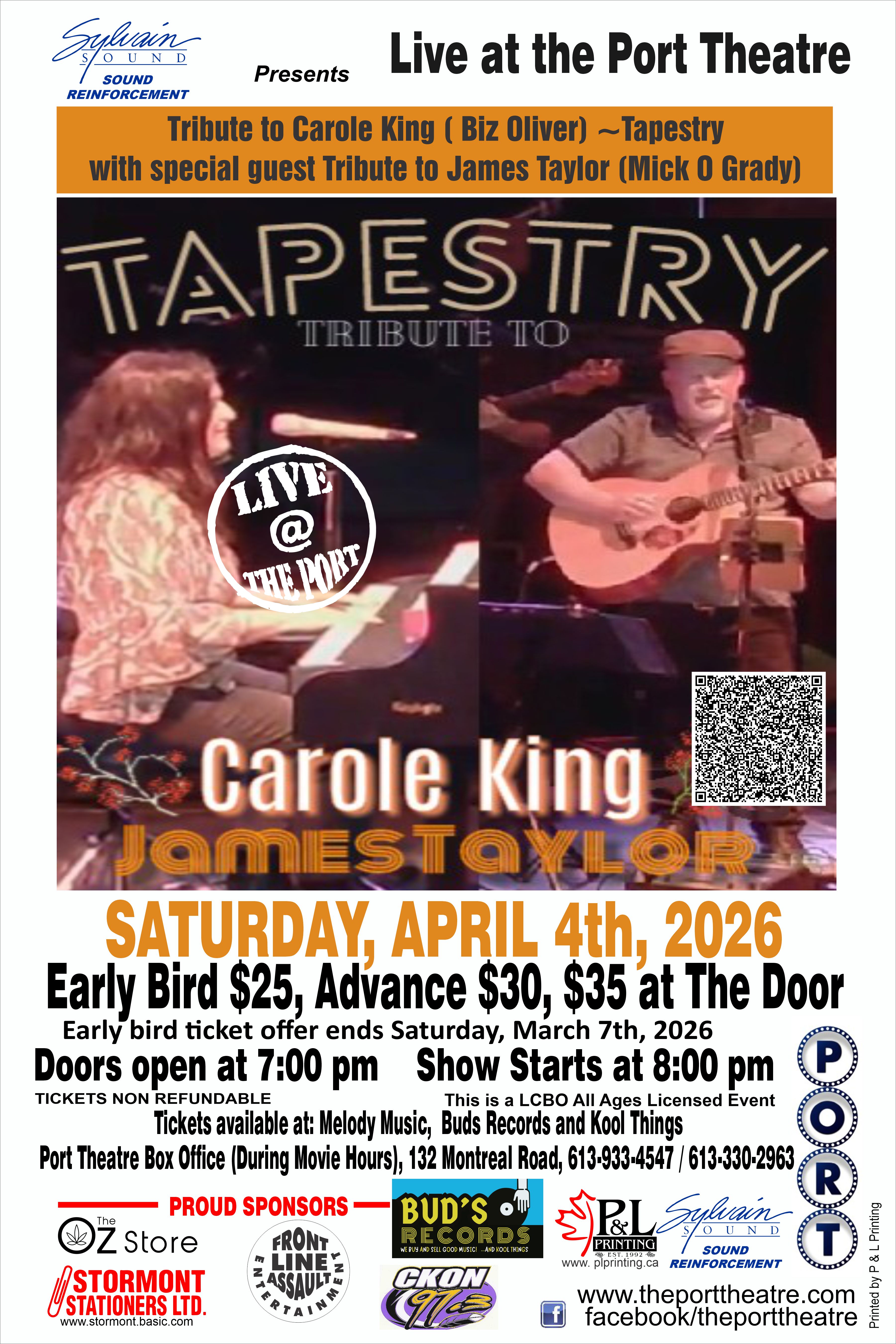 Tribute to Carole King ( Biz Oliver) ~Tapestry with special guest Tribute to James Taylor